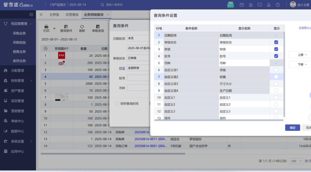 1.財(cái)貿(mào)ERP的業(yè)務(wù)報(bào)表查詢功能,支持用戶根據(jù)多種條件靈活篩選,并可自定義查詢方案,輕松應(yīng)對不同業(yè)務(wù)場景的數(shù)據(jù)需求。