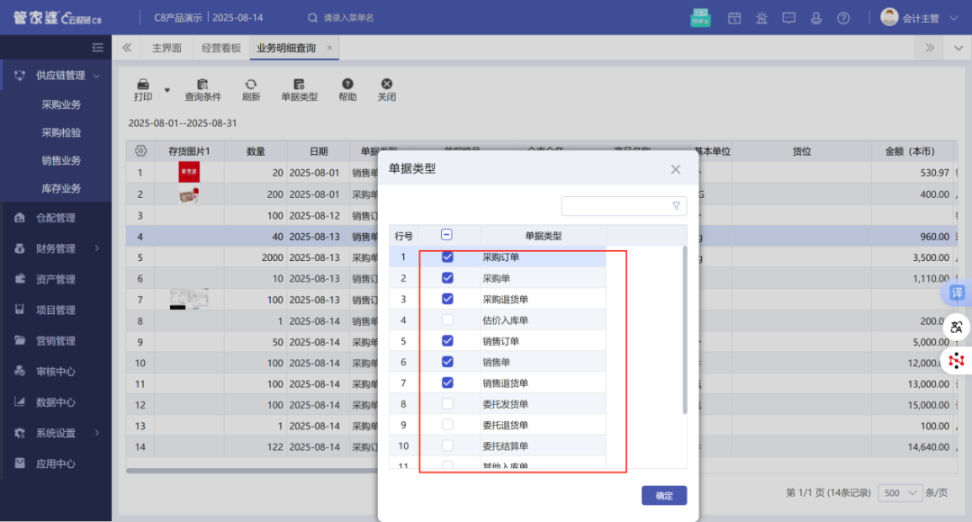 2.采購單、銷售單、出入庫單等業(yè)務(wù)單據(jù)可同時(shí)關(guān)聯(lián)查詢,也可按需單獨(dú)查看,既方便財(cái)務(wù)和業(yè)務(wù)人員快速定位信息,提高對賬、核銷和統(tǒng)計(jì)分析效率。也能通過跨業(yè)務(wù)類型的穿透查詢,打破數(shù)據(jù)孤島。