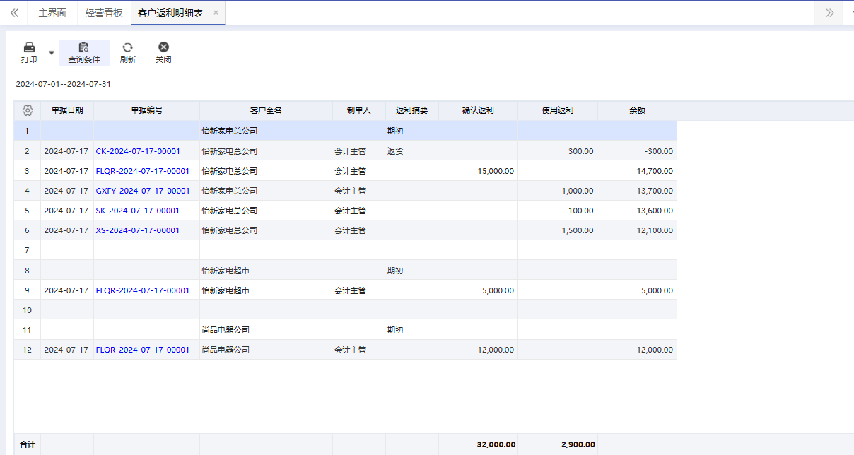 03 企業還可通過返利余額、明細查詢,輕松了解返利動態。如圖7、圖8所示。