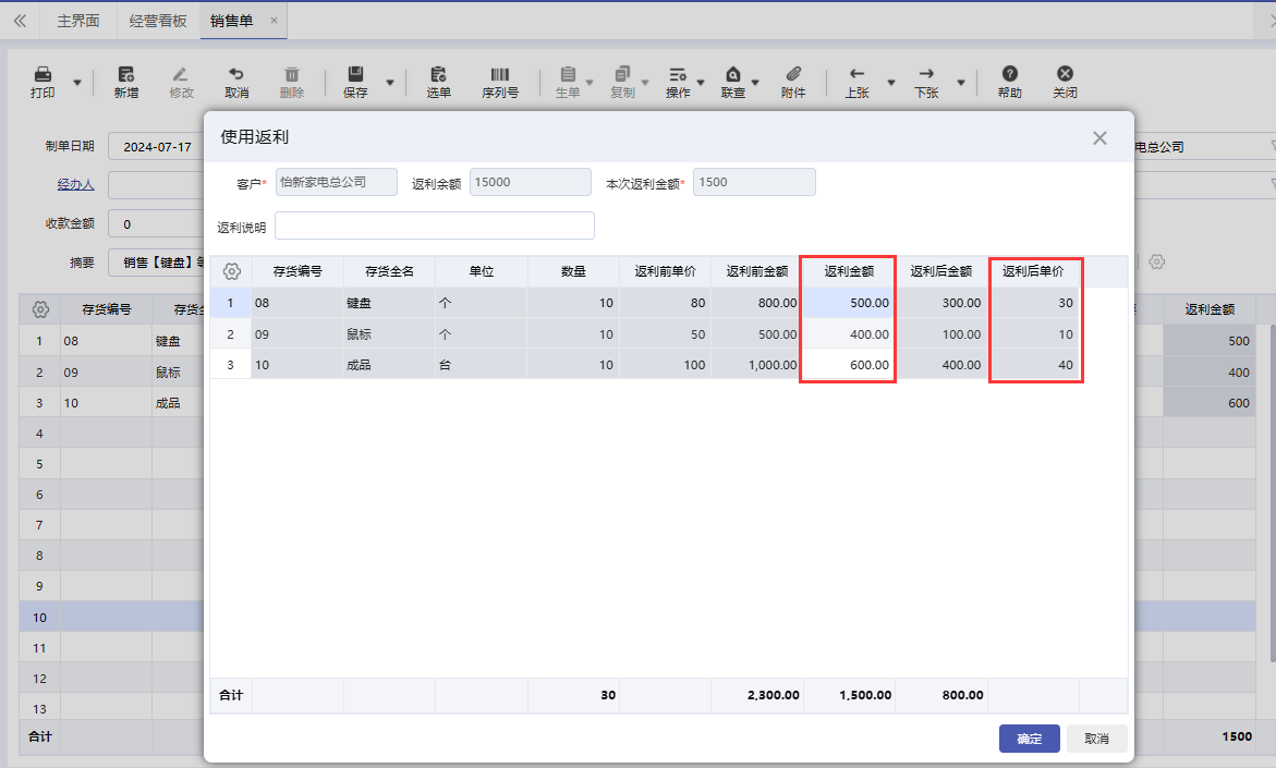① 銷售時攤銷售價,通過銷售單—操作—使用返利來處理。如圖3所示。